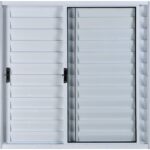- Modelo de Abertura: 1 Folha de Vidro Correr Lateral; 1 Folha Veneziana Correr (Ventilada) Lateral; 1 Folha Fixa Veneziana