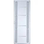 A Porta Lambril Visor Duplo em Alumínio Branco traz segurança, estilo moderno e iluminação natural. Seu lambril duplo reforçado com frisos em alumínio brilhante oferece alta durabilidade e resistência, além de um visual sofisticado. Os visores em vidro Mini Boreal proporcionam luminosidade suave, criando uma atmosfera iluminada e aconchegante.