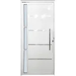 Porta Pivotante Lambril Frisos e Visor Lateral Com Puxador – Alumínio Branco